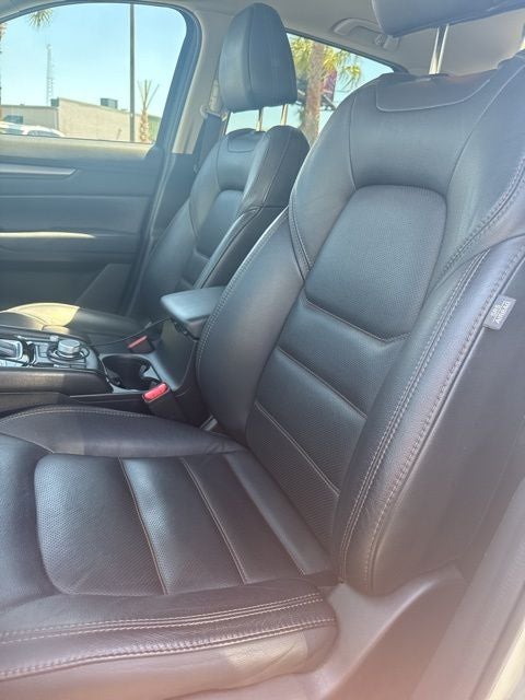 Check out all these great options Touring Preferred SV Package (Auto Dimming Rearview Mirror w/HomeLink, Bose 10-Speaker Premium Audio Sound System, Heated Front Bucket Seats w/Memory, Leather Seat Trim, Power Rear Liftgate, and Power Sliding-Glass Moonroof w/Interior Sunshade), 4-Wheel Disc Brakes, 4.624 Axle Ratio, 6 Speakers, ABS brakes, Air Conditioning, Alloy wheels, AM/FM radio, AppLink/Apple CarPlay and Android Auto, Auto High-beam Headlights, Automatic temperature control, Brake assist, Bumpers: body-color, Delay-off headlights, Driver door bin, Driver vanity mirror, Dual front impact airbags, Dual front side impact airbags, Electronic Stability Control, Emergency communication system: MAZDA CONNECT, Exterior Parking Camera Rear, Four wheel independent suspension, Front anti-roll bar, Front Bucket Seats, Front Center Armrest, Front dual zone A/C, Front reading lights, Fully automatic headlights, Heated Front Bucket Seats, Heated front seats, Illuminated entry, Leather Shift Knob, Leatherette Seat Trim, Low tire pressure warning, Occupant sensing airbag, Outside temperature display, Overhead airbag, Overhead console, Panic alarm, Passenger door bin, Passenger vanity mirror, Power door mirrors, Power driver seat, Power steering, Power windows, Radio data system, Radio: AM/FM/HD Audio System, Rain sensing wipers, Rear anti-roll bar, Rear reading lights, Rear seat center armrest, Rear window defroster, Rear window wiper, Remote keyless entry, Snowflake White Pearl Mica Paint, Speed control, Speed-sensing steering, Split folding rear seat, Spoiler, Steering wheel mounted audio controls, Tachometer, Telescoping steering wheel, Tilt steering wheel, Traction control, Trip computer, Turn signal indicator mirrors, Variably intermittent wipers, and Wheels: 17 x 7J Aluminum Alloy. Snowflake White Pearl Mica 2021 Mazda CX-5 Touring AWD 6-Speed Automatic SKYACTIV® 2.5L 4-Cylinder DOHC 16V