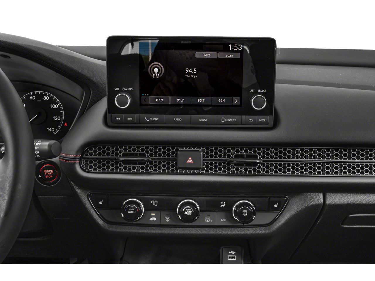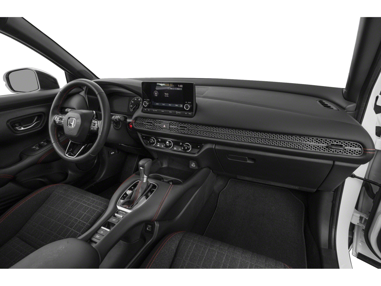 Check out all these great options 4-Wheel Disc Brakes, 5.436 Axle Ratio, 6 Speakers, ABS brakes, Adaptive Cruise Control: Adaptive Cruise Control (ACC) with Low-Speed Follow, Air Conditioning, Alloy wheels, AM/FM radio, Apple CarPlay/Android Auto, Auto High-beam Headlights, Automatic temperature control, Blind Spot Information (BSI) System warning, Brake assist, Bumpers: body-color, Cloth Seat Trim, Delay-off headlights, Driver door bin, Driver vanity mirror, Dual front impact airbags, Dual front side impact airbags, Electronic Stability Control, Emergency communication system: HondaLink, Exterior Parking Camera Rear, Four wheel independent suspension, Front anti-roll bar, Front Bucket Seats, Front Center Armrest, Front reading lights, Fully automatic headlights, Heated door mirrors, Heated Front Bucket Seats, Heated front seats, Illuminated entry, Knee airbag, Leather Shift Knob, Low tire pressure warning, Occupant sensing airbag, Outside temperature display, Overhead airbag, Panic alarm, Passenger door bin, Passenger vanity mirror, Power door mirrors, Power steering, Power windows, Radio data system, Radio: 180-Watt Audio System w/6 Speakers, Rear anti-roll bar, Rear reading lights, Rear side impact airbag, Rear window defroster, Rear window wiper, Remote keyless entry, Security system, Speed control, Speed-sensing steering, Split folding rear seat, Spoiler, Steering wheel mounted audio controls, Tachometer, Telescoping steering wheel, Tilt steering wheel, Traction control, Trip computer, Turn signal indicator mirrors, Variably intermittent wipers, and Wheels: 18 Gloss Black Alloy. 2023 Honda HR-V Sport FWD CVT 2.0L I4 DOHC 16V i-VTEC