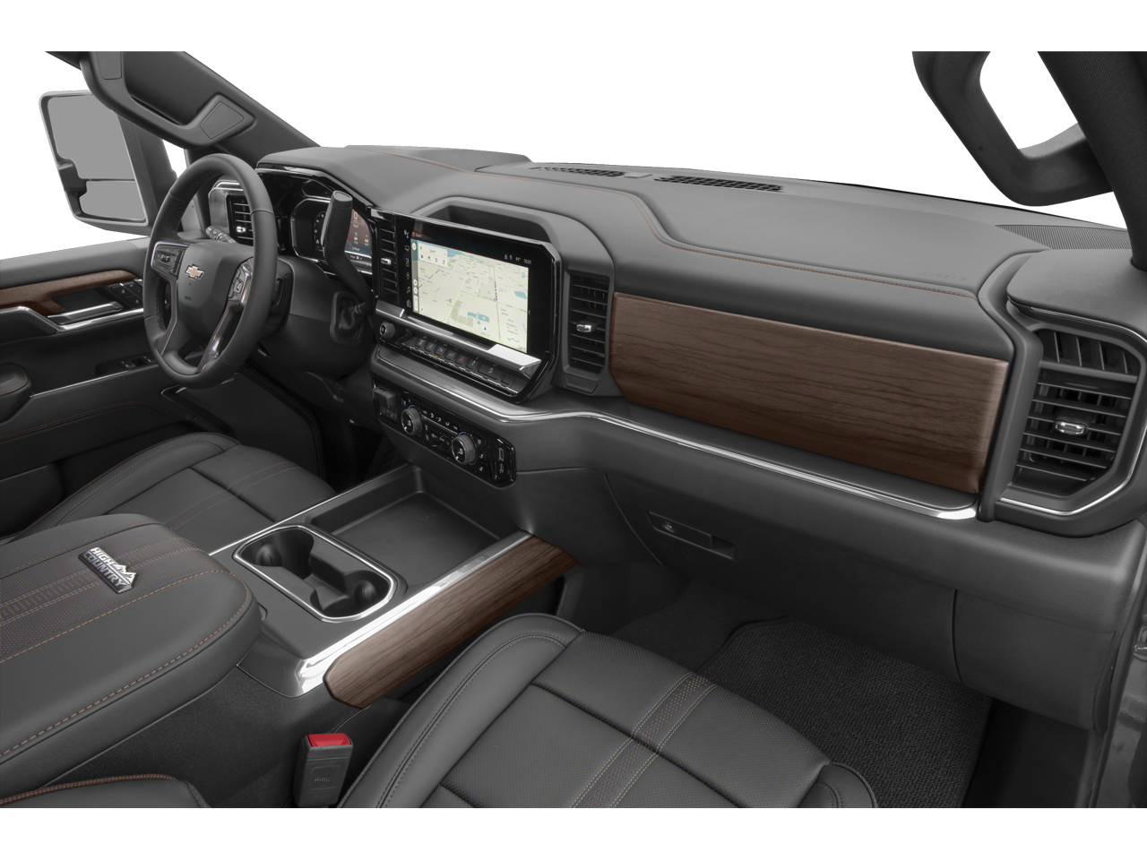 Step inside the High Country and you'll be surrounded by premium features that elevate your driving experience. Enjoy the convenience of the power-retractable assist steps, the clarity of the 15-inch head-up display, and the seamless connectivity of the Chevrolet Infotainment 3 Premium system. The heated and ventilated leather-appointed seats, heated steering wheel, and Bose premium sound system create an unparalleled level of comfort and refinement.