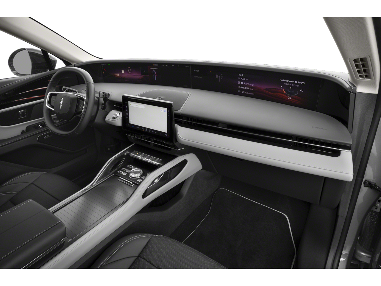 Check out all these great options Equipment Group 202A Reserve II (110V Power Converter, Auto Air Refresh, BlueCruise Equipped (4-Years Included), Digital Scent, Hands-Free Power Liftgate, Panoramic Vista Roof w/Powershade, and Rear Heated Seats w/Switch Control), Jet Appearance Package (Black Exterior Elements, Body Color, and Wheels: 22 Satin Dark Luster Aluminum), 2.0L GTDI FHEV, 10 Speakers, 4-Wheel Disc Brakes, ABS brakes, Adaptive suspension, Air Conditioning, Alloy wheels, AM/FM radio: SiriusXM with 360L, Apple CarPlay/Android Auto, Auto High-beam Headlights, Auto tilt-away steering wheel, Auto-dimming Rear-View mirror, Automatic temperature control, Brake assist, Bumpers: body-color, Compass, Delay-off headlights, Driver door bin, Driver vanity mirror, Dual front impact airbags, Dual front side impact airbags, Electronic Stability Control, Emergency communication system: 911 Assist, Exterior Parking Camera Rear, Four wheel independent suspension, Front anti-roll bar, Front Bucket Seats, Front Center Armrest w/Storage, Front dual zone A/C, Front reading lights, Fully automatic headlights, Garage door transmitter: HomeLink, Heated door mirrors, Heated front seats, Heated steering wheel, Illuminated entry, Knee airbag, Leather steering wheel, Lincoln Digital Experience, Low tire pressure warning, Memory seat, Navigation System, Occupant sensing airbag, Outside temperature display, Overhead airbag, Overhead console, Panic alarm, Passenger door bin, Passenger vanity mirror, Power door mirrors, Power driver seat, Power Liftgate, Power passenger seat, Power steering, Power windows, Prem Lthr-Trimmed Htd/Ventilated Captain's Chairs, Radio data system, Radio: AM/FM Revel Audio System, Rain sensing wipers, Rear anti-roll bar, Rear reading lights, Rear seat center armrest, Rear window defroster, Rear window wiper, Remote keyless entry, Security system, SiriusXM w/360L, Speed control, Speed-sensing steering, Speed-Sensitive Wipers, Split folding rear seat, Spoiler, Steering wheel memory, Steering wheel mounted audio controls, Tachometer, Telescoping steering wheel, Tilt steering wheel, Traction control, Trip computer, Turn signal indicator mirrors, Variably intermittent wipers, and Wheels: 21 Bright Machined Aluminum. White Platinum Clearcoat Metallic 2025 Lincoln Nautilus Reserve AWD CVT 2.0L GTDI FHEV 2.0L GTDI FHEV.